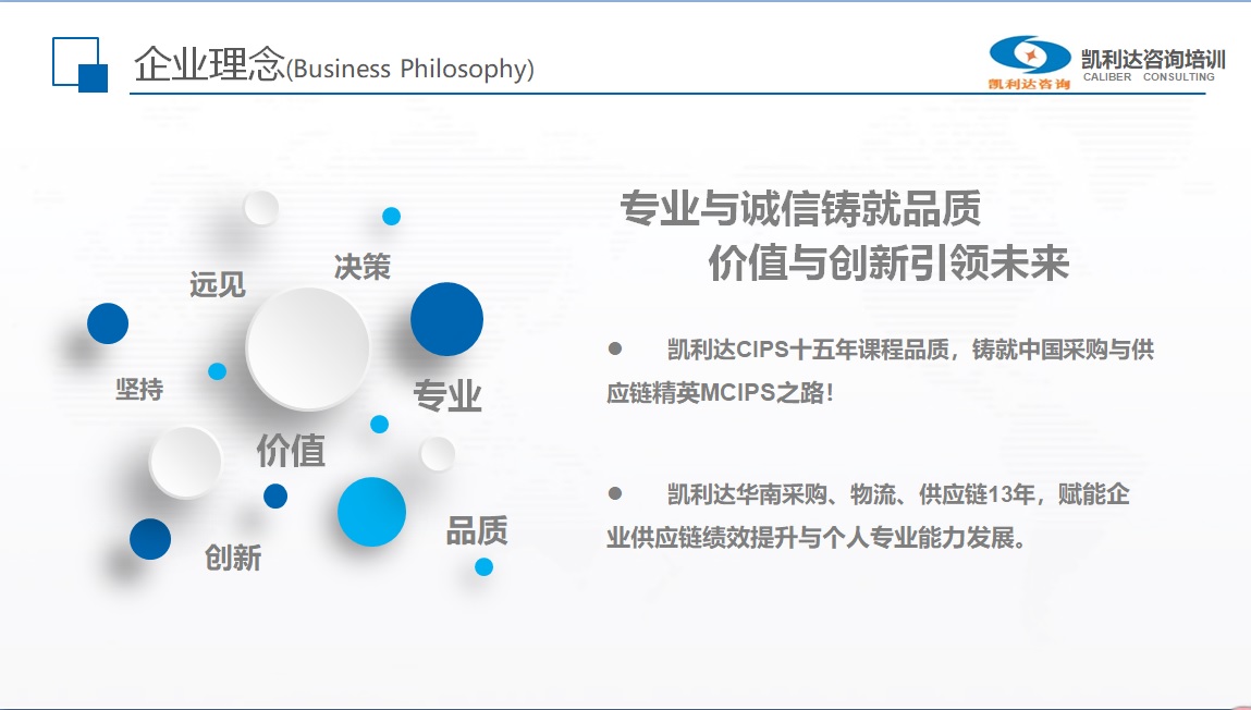 电话:(86)-755-26491993 13352982853 Email:caliberconsultingsz@gmail.com QQ: 271317094, 515710461, 974760834 微信咨询:CaliberConsulting (13352982853), 企业公众微信号:CaliberConsultingPub (凯利达采购物流供应链) 南山培训点地址:深圳市南山区东滨路与南新路交界处南侨商务酒店8楼803室(南新路1003号荔源大厦) 福田培训点电话:(86)-755-26491993 QQ:515710461 福田培训点地址:深圳市福田区福中路17号国际人才大厦5楼519室 广州培训点地址:广州市天河区环市东路水荫路水荫直街7天翔云楼宾馆后付楼4楼419室或主楼301室 总部地址:深圳市南山区创业路怡海广场东座写字楼2802室 |