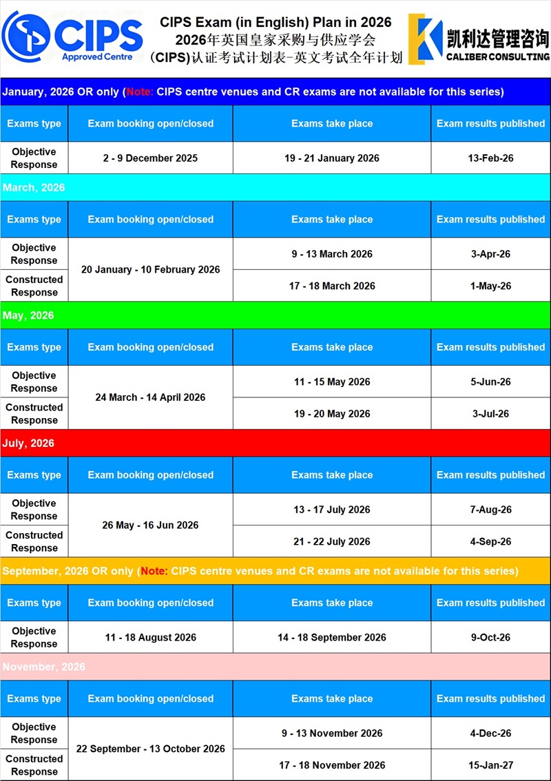 Please plan your studies and examinations in accordance with the 2026 CIPS examination schedule. We are not only your CIPS Study and Exam Centre, but also a trusted CIPS resource you can rely on whenever you are ready to begin your CIPS studies or encounter challenges during your learning journey.Please do not hesitate to contact us using the details as below.Caliber Consulting 凯利达咨询培训 A CIPS Approved Study & Exam Center covering Asia Pacific (within and surrounding China) CIPS UK 授权培训认证考试中心